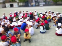 本日の20分休みの時間に、シェイクアウト避難訓練を実施しました。校内ではすぐさま机の下に隠れ、校庭では危険物のない中央に集合し、静かに指示を待つことができました。