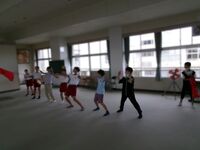 先週より運動会に向けて、応援団の5·6年生が練習を行っています。今日は早速、色ごとに分かれて掛け声や振りを確認していました。気合いの入った掛け声がみぬまホールに響いています。