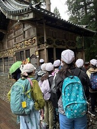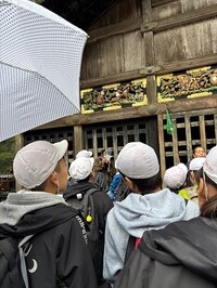 五重塔や三猿、鳴龍などについて、社会科の学習とも関連付けながら学んでいました。写真とは違う実物の色鮮やかさ、彫刻の細かさなどを感じることができました。