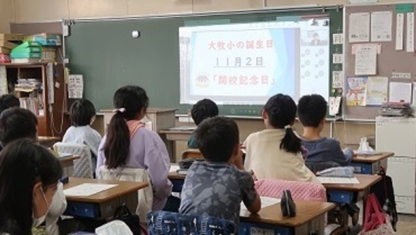 本日のお話朝会では、大牧小の歴史について校長先生からお話がありました。11月2日が大牧小の誕生日であることや、どのように大牧小ができたのか、当時の人々の努力など、大牧小学校の歴史をたくさん知ることができました。これからも大牧小やこの地域に愛着をもって育ってほしいと思います。