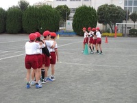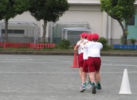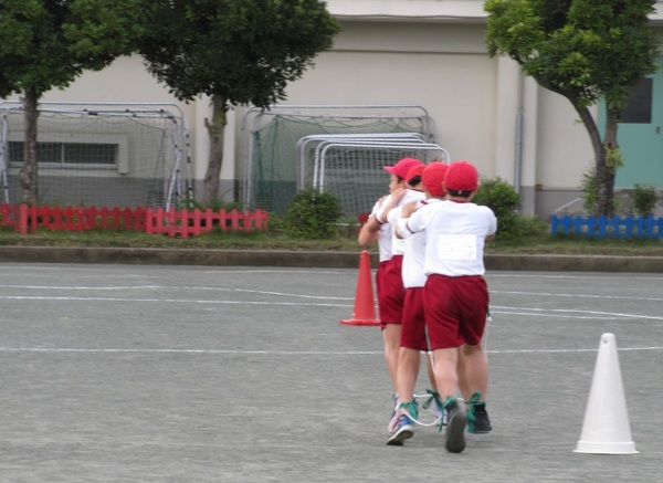 運動会に向けて、ムカデ競争の学年練習を行いました。