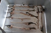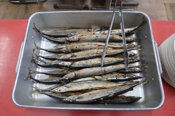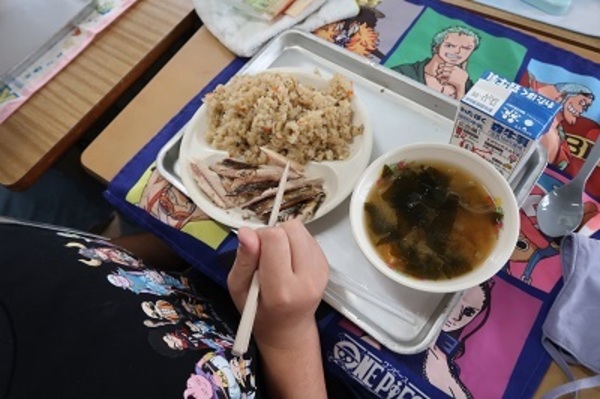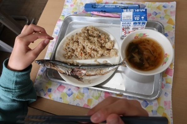 大牧小、尾間木小、尾間木中の3校合同献立でさんま一尾の塩焼きが提供されました。器用に身をほぐして食べる児童もいれば、苦戦しながら食べる児童もいました。秋の味覚を存分に味わうことができました。