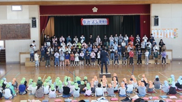 なかよし音楽会(児童の部)を行いました。どの学年も練習の成果を発揮し、心を一つに合唱や合奏ができました。全校合唱では、素敵な歌声が体育館中に響き渡りました。また、他の学年の合唱や合奏を聴く態度も立派でした。明日の音楽会でもより一層素敵な音を響かせてほしいと思います。