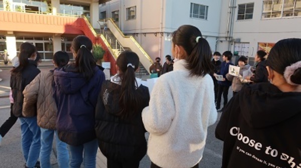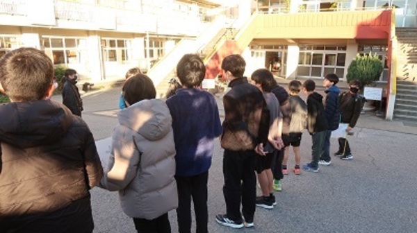 全校にあいさつの輪を広げるために、計画、代表委員会の児童の発案で「また明日」運動を行いました。5、6年生の各クラスが下校時間に日替わりであいさつ運動をしました。下駄箱や正門付近には、元気なあいさつが響きわたり、笑顔で下校する様子が見られました。