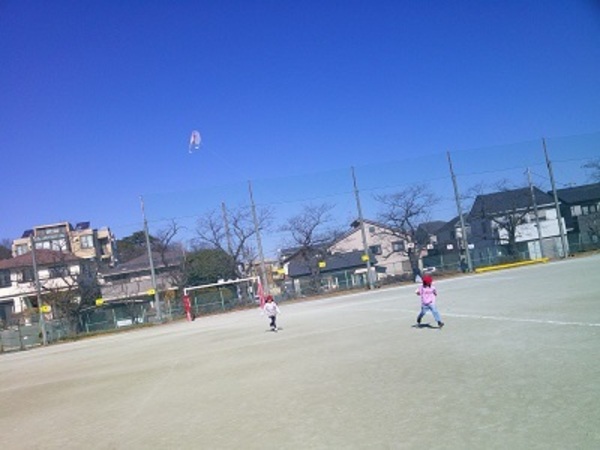 生活「ふゆをたのしもう」の学習で凧あげを行いました。児童は、一人一人が思いを込めて描いた凧を手に、晴天の下で活動に取り組みました。