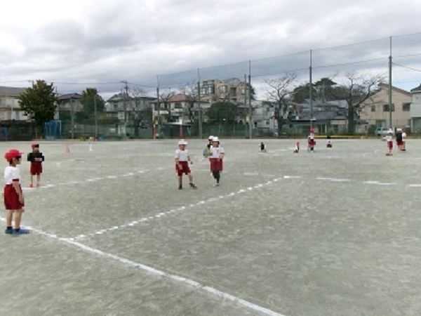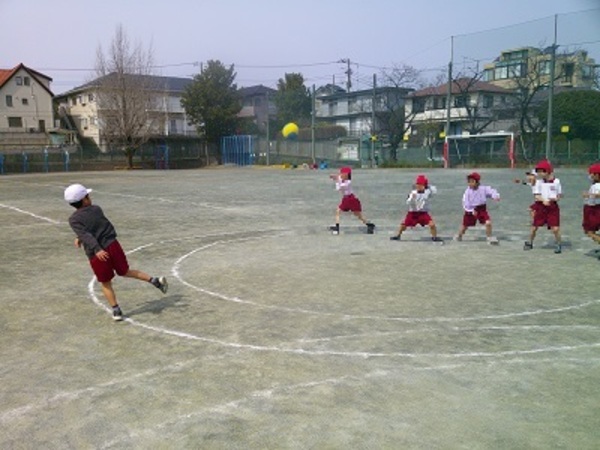 「ひらいて、ぱたん、とんでいけ!」を合言葉に、ボールの投げ方をたくさん練習し、ゲームの中で実践する姿が見られました。