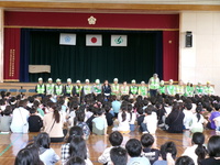 あわせて、いつも子どもたちの下校を温かく見守ってくださっている地域の見守りボランティアの皆さんの紹介とあいさつを行い、日頃のご支援に感謝の気持ちを伝えました。